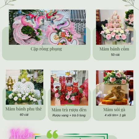 - Tặng 1 khay trầu rượu + TẶNG 6 ÁO BƯNG QUẢ ( HOẶC 1 ÁO DÀI SUI HOẶC ÁO DÀI CÔ DÂU)